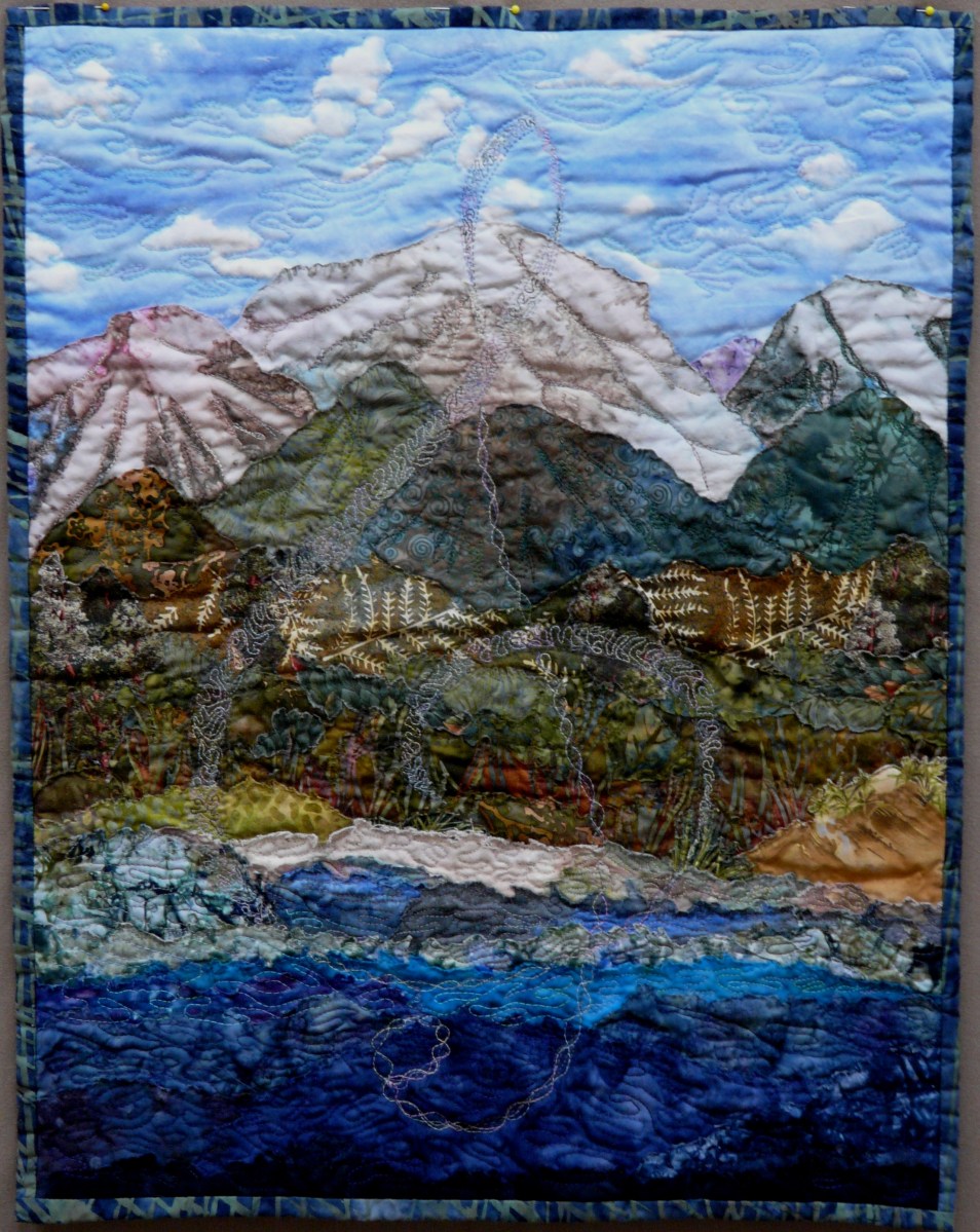 “Musical Mountains” is an original design created on commission for an opera singer who feels a strong kinship between her musical voice and her connection to nature. It reflects her earthiness and the metaphoric way her voice rises from within the earth of her body.